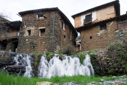 Inden I begynder tilbageturen nær Villamiel, er det værd at besøge landsbyen San Martín de Trevejo, hvor vandet løber gennem gaderne og udgør en del af det bymæssige landskab.