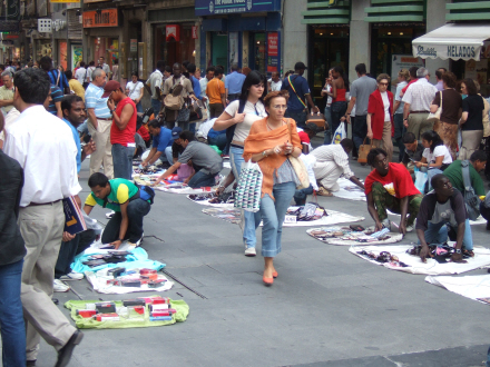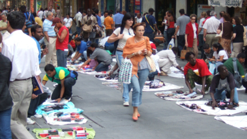 Gadesælgerne går under navnet ‘top-mantas’, fordi de bruger tæpper - mantas - til at lægge deres varer på. De udgør et stort problem for det lokale erhvervsliv, men der er ikke meget håb om, at det bliver bedre.