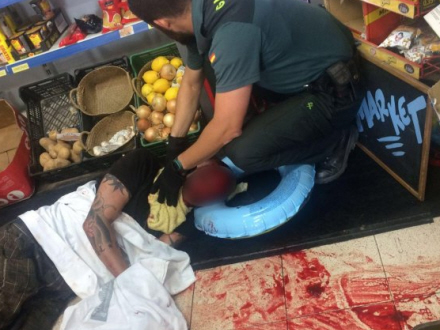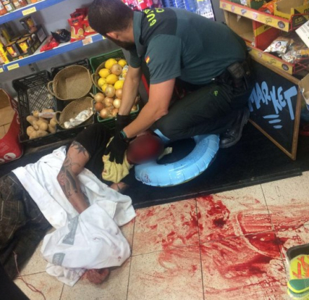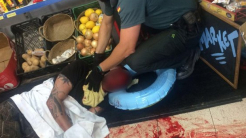 Offeret var hoppet ud af en kørende bil efter et skænderi med kæresten, og han indhentede hende i en butik, hvor han stak hende med den store kniv. Kort efter blev han anholdt af Guardia Civil.