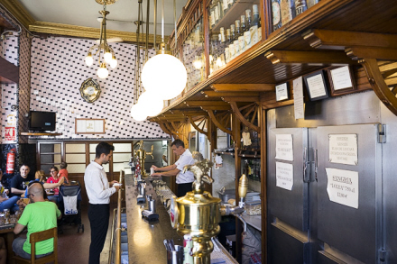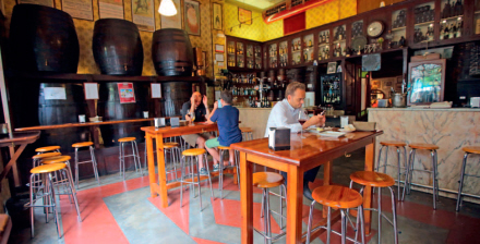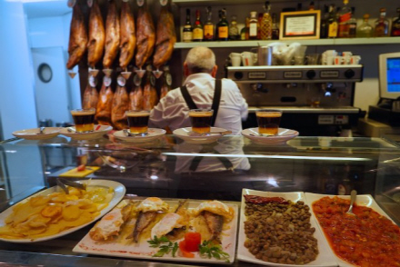 Det er en af de gamle barer, hvor man står eller sidder langs bardisken, omgivet af mennesker, snak og stemning - alt sammen ledsaget af velsmagende tapas.