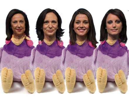 Margarita Robles (PP), Carolina Bescansa (Podemos), ordstyreren Vicente Vallés, der ikke kunne styre noget som helst, Inés Arrimada (Ciudadanos) og Andrea Levy (PP)