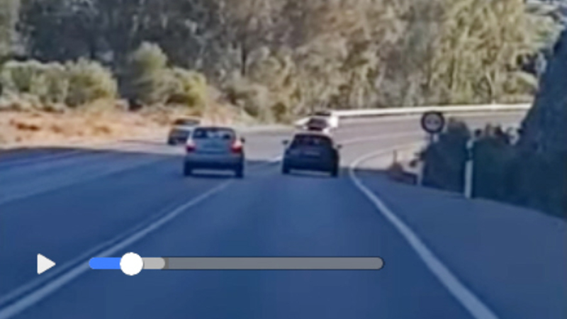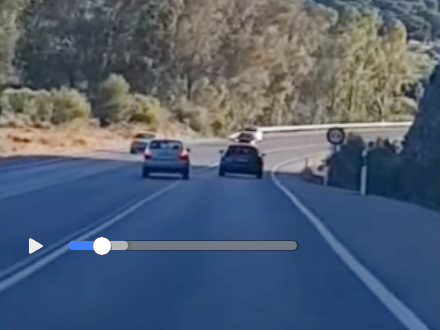 Videoen blev optaget af den bagvedkørende, der i øvrigt også var ham, der tilkaldte Guardia Civil. Hvorvidt der er tale om en, der har siddet og filmet, mens han selv har kørt, melder historien ikke noget om. Vi satser på, det var en passager i bilen...