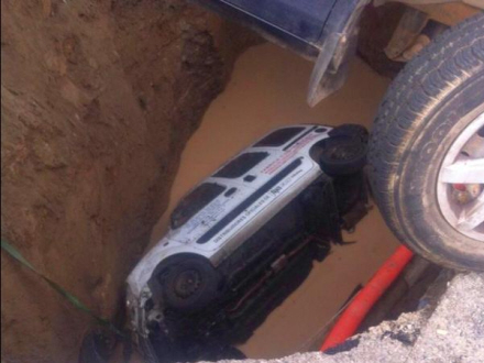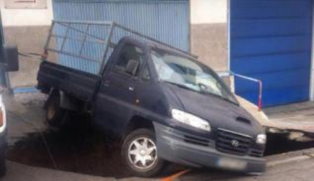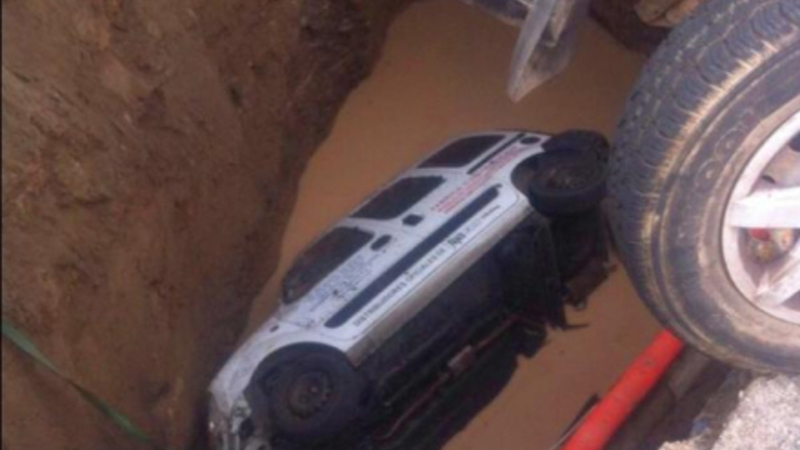 Manden havde netop sat sig ind i sin bil, da vejen kollapsede. Bilen faldt fire meter ned, og samtidig var yderligere to biler tæt på at falde ned oven på.