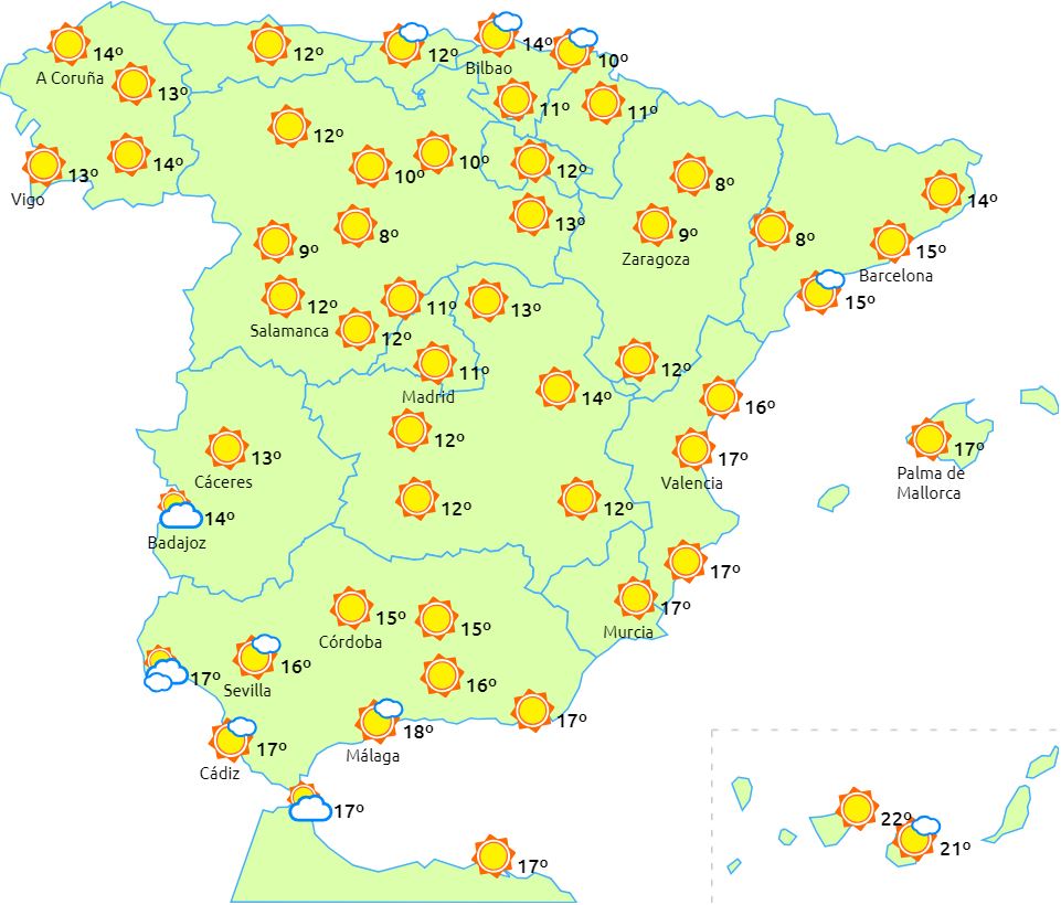 Vi har for tiden vejr, der er langt varmere og sjovere, end man er vant til på denne årstid. Og det gælder ikke kun for sydkysten af halvøen og De Kanariske Øer - det er bare stor set ønskevejr over det hele.