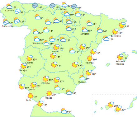 Faldende dagstemperaturer på den nordlige halvdel af halvøen, og det vil være særligt mærkbart i Biscayabugten. Få ændringer i resten.