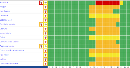 Advarsler om meget høje temperaturer i det meste af halvøens indre egne og på Balearerne.