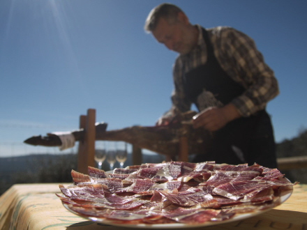Skinken er fuldstændig organisk. Grisene går frit uden for og spiser kun de agern, der falder fra egetræerne.