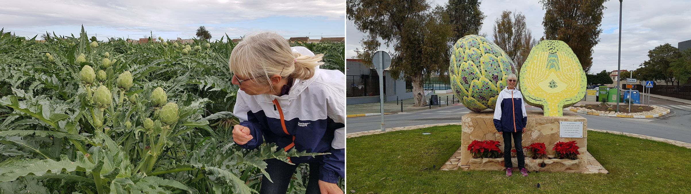 På vores cykelture rundt i omegnen. har vi fulgt landbruget omkring os. Granatæblerne var plukket lige inden, vi kom hertil. Appelsin- og citronplantagerne står sprængfyldte, nogle er plukkede, men mange venter stadig. Blomkål i flere afskygninger er høstet i stor stil i denne måned. Artiskokkerne vælter op af jorden og høstes på markerne omkring os.