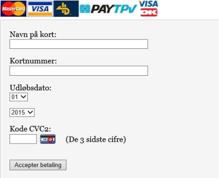 Når du vælger betaling med kreditkort kommer følgende formular frem: