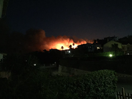 STORBRAND: Brandfolk har arbejdet på højtryk i går og hele natten for at slukke en voldsom brand nær Gibraltar, der har skabt stor panik. Mange er evakueret - deriblandt en masse børn her til morgen. Branden er stabiliseret, men ikke helt under kontrol (opdateret).