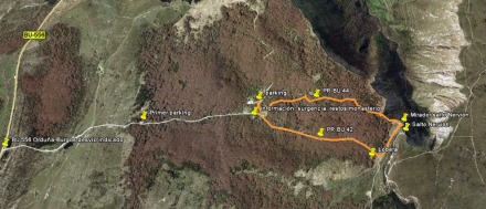 Her parkerer man bilen og starter på stien, der fører hen til vandfaldet El Salto del Nervión.