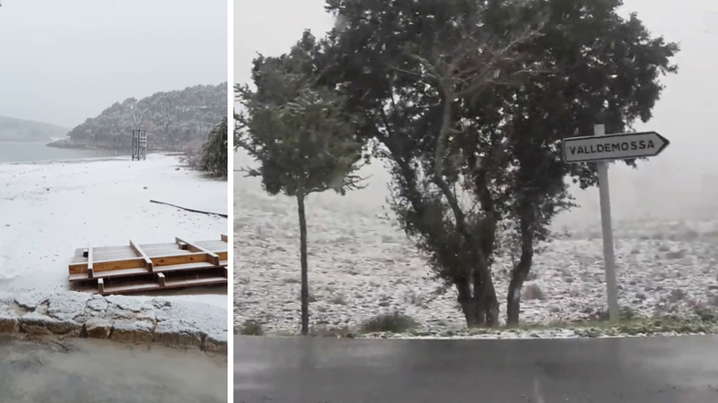 Stormen Juliette forårsager historisk snefald på Mallorca: Fra Serra de Tramuntana til strandkanten i Cala Santanyí.