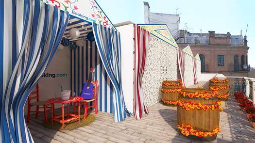 Sevillas aprilfest er verdensberømt, men mange af de traditionelle festtelte ‘casetaer’ kræver særlig invitation og er ikke for turister. Derfor har Booking.com markeret festlighederne ved at lave casetaer til overnatning på en tagterrasse i hjertet af byen. Teltene afspejler byfestens forskellige sider og giver mulighed dermed for at “opleve feriaen helt indefra”.
