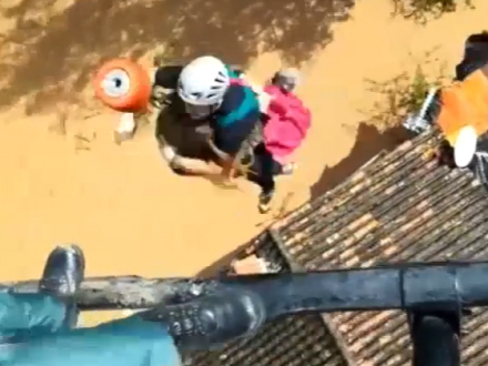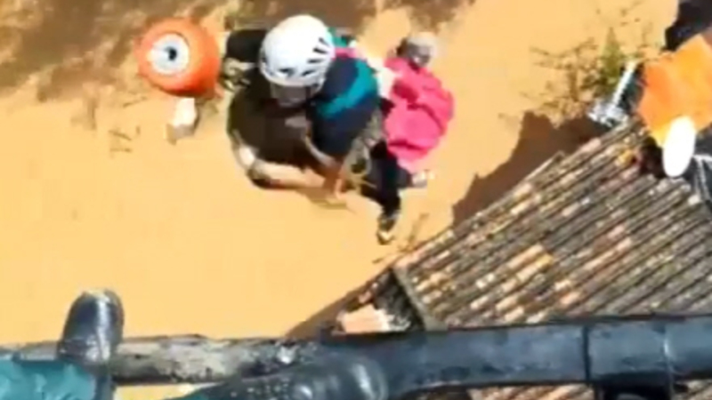 Søndag gik dog heller ikke stille for sig. Optagelser fra en dramatisk redningsaktion ved Guadiaro-floden viser, hvordan en rædselsslagen kvinde bliver hejst op i en helikopter.