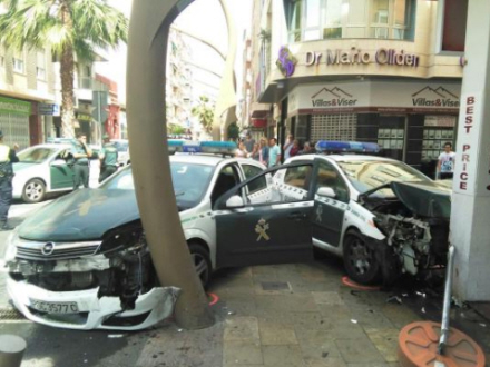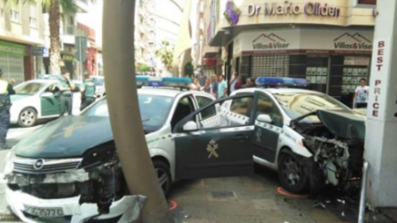 De to betjente overlevede heldigvis sammenstødene og er blevet indlagt på hospitalet i Torrevieja med henholdsvis nakkeskader og forskellige knubs.
