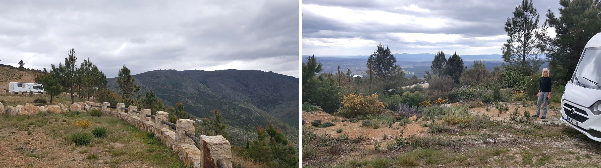 Vi stopper ved udsigtspunktet Miradouro das Chopeiras (kan findes på google). Efter at have nydt udsigten, og vi er på vej hen til bilen, svinger en camper mere ind på pladsen fra modsat retning.