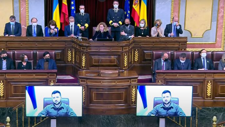 Under videokonferencen, der fandt sted tirsdag eftermiddag i Kongressalen bad Zelenskyi Spanien om mere hjælp med våben og sanktioner.