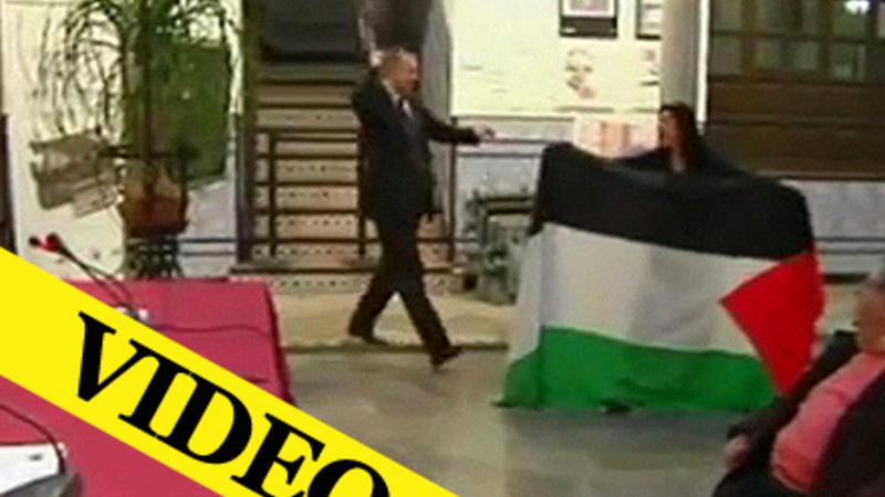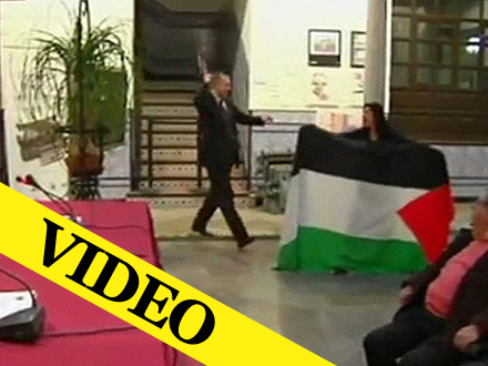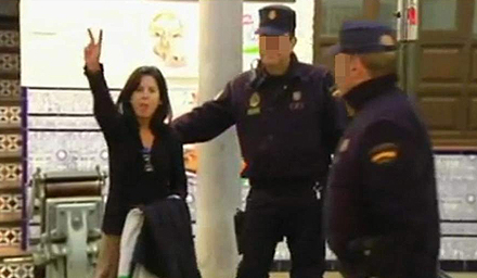 Den unge kvinde deltog i en pro-palæstinensisk demonstration med flag og slagord i forbindelse med den officielle indvielse af en udstilling om 25-års jubilæet for de diplomatiske forbindelser mellem Spanien og Israel. Aktionen fandt sted lige uden for presseklubbens hovedkontor i Granada.