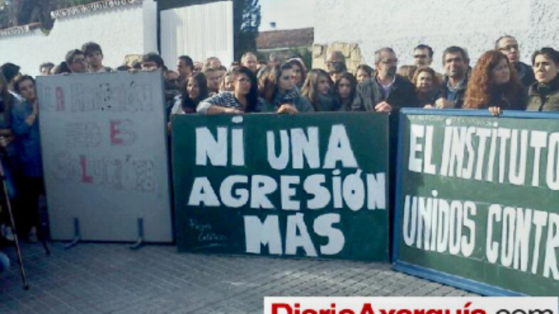 Mindst 300 elever samledes sidste onsdag for at protestere mod den stigende vold mod lærere, og hændelsen er af uddannelsesrådet i Málagas blevet betegnet som ”modbydelig”.