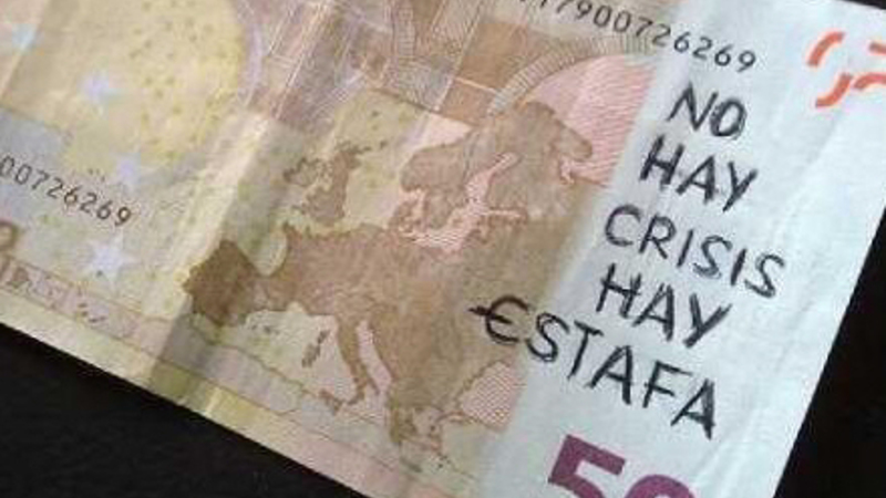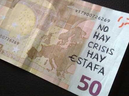 Skriv din protest på pengesedlen og lad den så skifte hænder, lyder budskabet fra gruppen, som understreger, at det er ”helt lovligt”. Jesús Moreno siger, at det er en protest mod, at ”man i Spanien bruger penge på at bygge broer, selv om der ikke er nogen floder”.