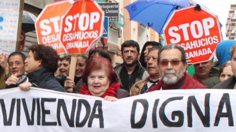 Demonstranter fra pressionsgruppen Stop Desahucios (Stop Udsættelser), siger at den afdøde var blandt gruppens medlemmer, og han havde længe kæmpet mod at hans familie blev sat på gaden, da de på grund af arbejdsløshed ikke kunne betale af på en gæld på 100.000 til banken.
