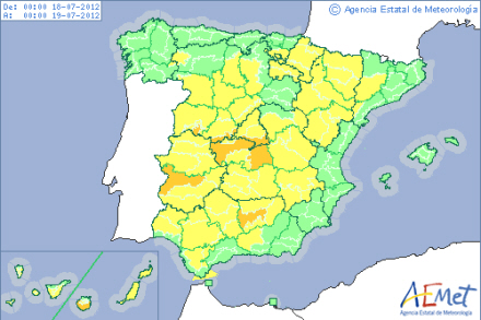 Det bliver ikke lige frem køligere i de næste dage. Meteorologerne har udstedt hede-varsel i Andalusien, Castilla-La Mancha, Castilla y León, Madrid, Extremadura, Galicien og på De Kanariske Øer, hvor termometret i dag kan nå helt op på 40 grader.