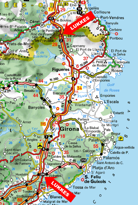 Den 81 km. Lange landevej N-II mellem Vidreres og La Jonquera benyttes dagligt af hen ved 4.000 lastbiler, der kommer fra hele Spanien.