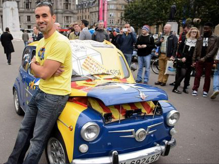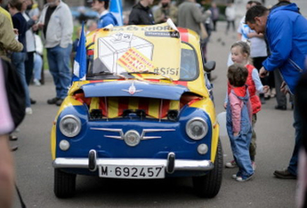 - Vi lever i et diktatur, og vi vil gerne stemme lige som i Skotland, sagde Pep Pladeveya til det franske nyhedsbureau AFP, da den lille catalanske bil ankom til George Pladsen