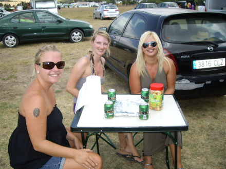 Camping-pigerne Kathrine, Katrine og Gunn med øller og kiks