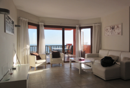 I samme bebyggelse tilbydes også lejlighed med 3 soveværelser og samme størrelse terrasse. Den har ikke samme panoramaudsigt, men stadigvæk rigtig flot udsigt til Middelhavet. Der etableres direkte udgang fra terrassen til pool og fællesareal. Prisen er 265.000 euro.