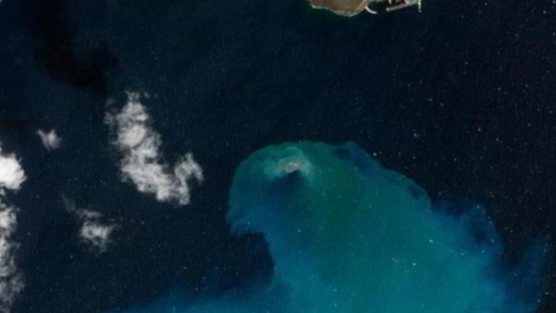 Der blev i forbindelse med vulkanudbruddet taget en del satellitbilleder af havet over vulkanen, og et af billederne er nu gået hen og blevet et vinderfoto.
