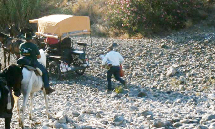 For læsere, der ikke er bekendt med forholdene i de sydspanske floder, kan det nok lyde besynderligt, at man rider op gennem en flod. Det rigtige ville også være, at kalde det for et udtørret flodleje. Sagen er jo den, at langt de fleste floder og bække tørrer helt ud om sommeren, og er derfor et oplagt alternativ til stier og veje.