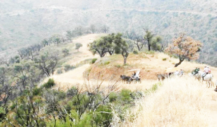 På flere strækninger ligger der tonsvis af sten, og det var her, muldyrene kom på deres første prøve. De to vogne hoppede og dinglede, og det var et rent under, at hjulene ikke faldt af.