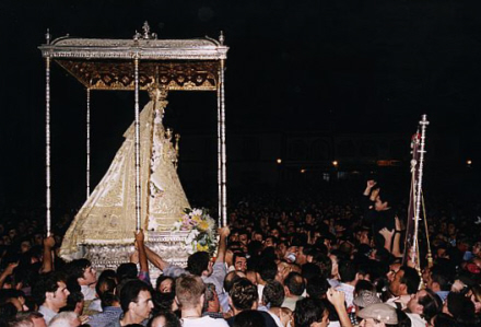 Natten mellem pinse søndag og mandag er pilgrimsfærdens ubetingede højdepunkt. Pladsen foran og inde i kirken fyldes til randen med mennesker. De kæmper alle for at komme så tæt på jomfruen som muligt.