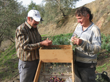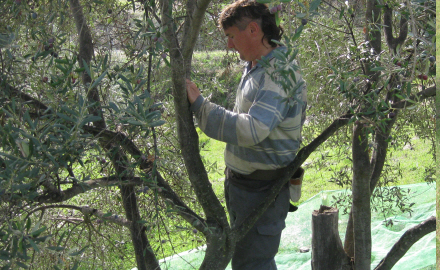 Det er rigtig hårdt arbejde at slå oliven ned