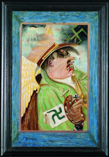 Erobreren. Oliemaleri fra 1942 af Joseph Steib, der illustrerer Hitler som en anti-kristen.