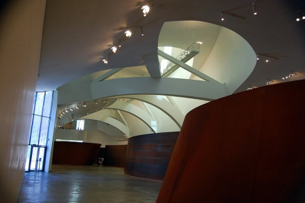 De mere end én million årligt besøgende kommer i lige så høj grad for at se bygningen som selve værkerne inde på museet. Bygningens facade glider ud i ét med tagene. Der er ikke som i traditionelle bygninger skift i materialerne. De titanium-, glas- og sandstensbeklædte flader spejler lyset fra døgnets rytme – om det så er lyset fra solen eller lyset fra byen lamper. Det giver et fantastisk lysspil og tilfører en ekstra dimension til arkitekturen.
