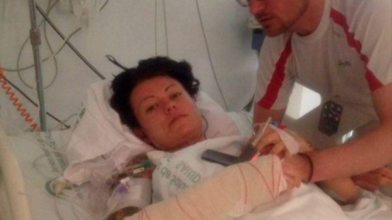 24-årige Amy Wigfull har brækket ryggen, skuldre, bækken og flere ribben, hun har blødninger i hjernen og en punkteret lunge, efter at hun t...