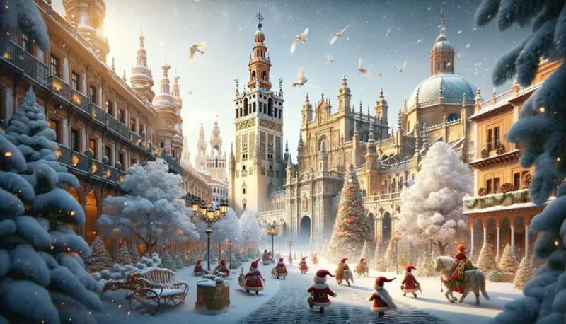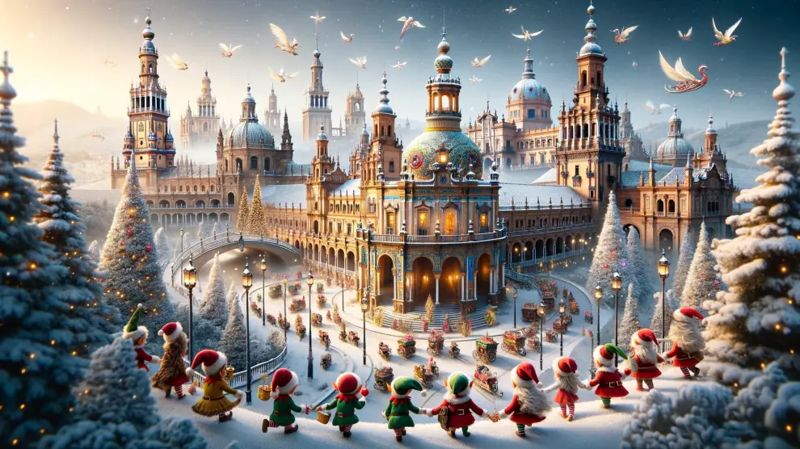 Ud over at være en tid fuld af gaver er det også en tid, hvor man kan lade fantasien løbe løbsk. DALL-E, ChatGPT's kunstige intelligens, har skabt disse billeder af, hvordan Sevilla ville se ud, hvis det var et rigtigt julerige. Her optræder de mest symbolske steder i et snedækket landskab og med typiske elementer fra juleforestillingerne, som rensdyr, nisser, engle eller julemanden ...