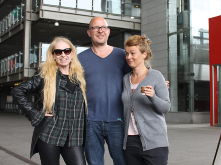 På billedet til denne artikel ser du Sanne med trommeslager Nicolaj Steen og keyboardspiller Annika Askman i Málaga Lufthavn.