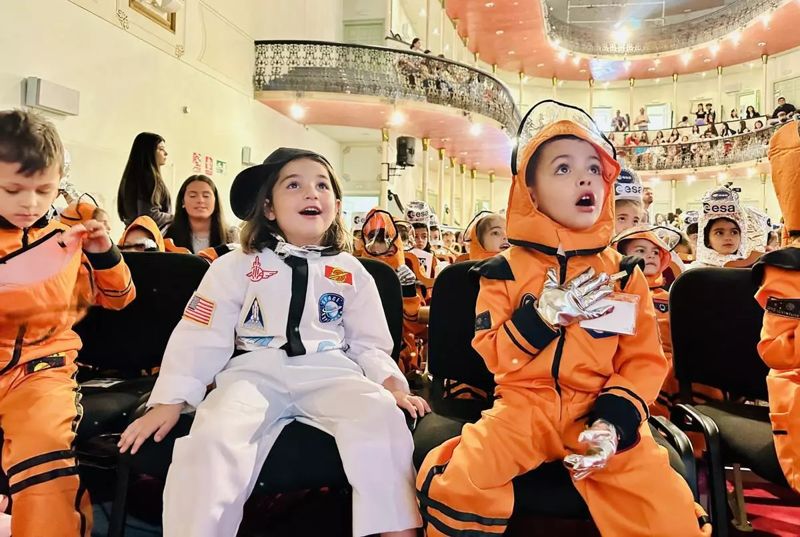 Udklædt i astronaut-kostumer er børnene ville med Sara, når hun holder foredrag
