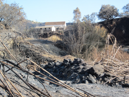 Huset her står helt i udkanten af La Mairena og blev overtaget af banken for omkring fire år siden, så der boede heldigvis ikke nogen i det, da flammerne omsluttede det.