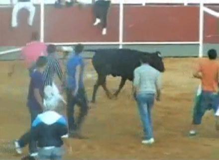 Seks unge blev i går anholdt, sigtet for dyremishandling. Sigtelserne er baseret på videooptagelser af mishandlingen (se foto, red), der fandt sted i tyrefægterareanen i Alhaurín el Grande tidligt søndag morgen. Billederne viser, hvordan en gruppe unge mænd slår, skubber og mishandler dyret, som til sidst måtte aflives på pladsen.