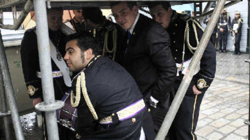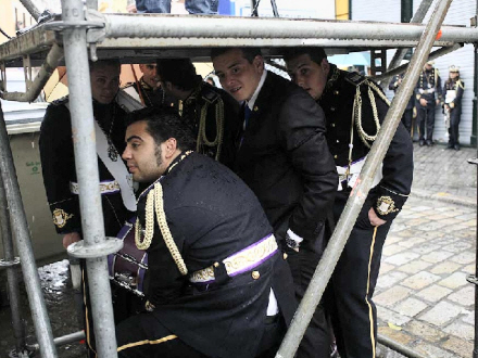 Selv broderskabet la Esperanza de Triana, som har gennemført sin procession uafbrudt siden 1846, måtte i går bøje sig for vejrguderne og lade tronen blive hjemme i sit tempel.