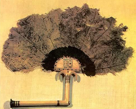 Den stammer helt tilbage fra år 3.000 f.Kr. i Egypten, hvor den tjente til at give luftcirkulation og holde insekter væk. Den kan i modsætning til den mere moderne model ikke klappes sammen.