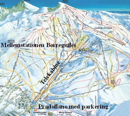 Pradollano ligger i 2.100 meters højde – mellemstationen Borreguiles i 2.654 meters højde.