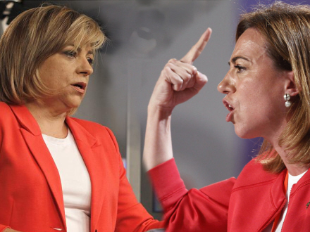 Vi taler om PSOE's nummer to, næstformand Elena Valenciano, som i går sendte en utvetydig advarsel til partiets rebel, den tidligere forsvarsminister Carme Chacón, om, at ”det er tid at bekæmpe højrefløjen - ikke til intern strid”.