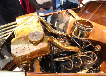 Det var dels 'El Visionario', en gammel Ford i brune metal-farver, som til daglig er udstillet i museets 'Tuning'-afdeling, og som til forveksling minder om 1800-tallets dampmaskiner eller et gensyn med H. G. Wells gamle science-fiktion. Bagfra kan den endda til forveksling ligne en kæmpestor kalkun.