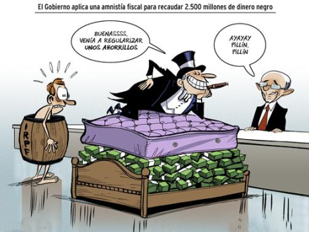 Skatteminister Cristóbal Montoro har meddelt, at der er deklareret 1,2 milliarder euro, mod de forventede 2,5 milliarder, som skulle have været med til at dække de sorte huller i statsbudgettet.