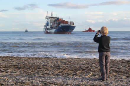 Det var spændende for både store og små at se det store, grundstødte skib (Læserfoto: Arne Wulff)